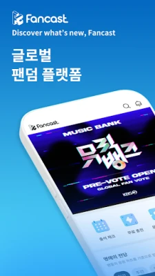 Fancast是K-POP粉丝的必备应用。购买官方专辑、写真集及演唱会门票。参与每日活动赚取投票资源,为偶像在KBS Music Bank、KGMA等官方投票及颁奖典礼中应援。体验丰富多彩的粉丝活动,支持你最爱的K-POP艺人!